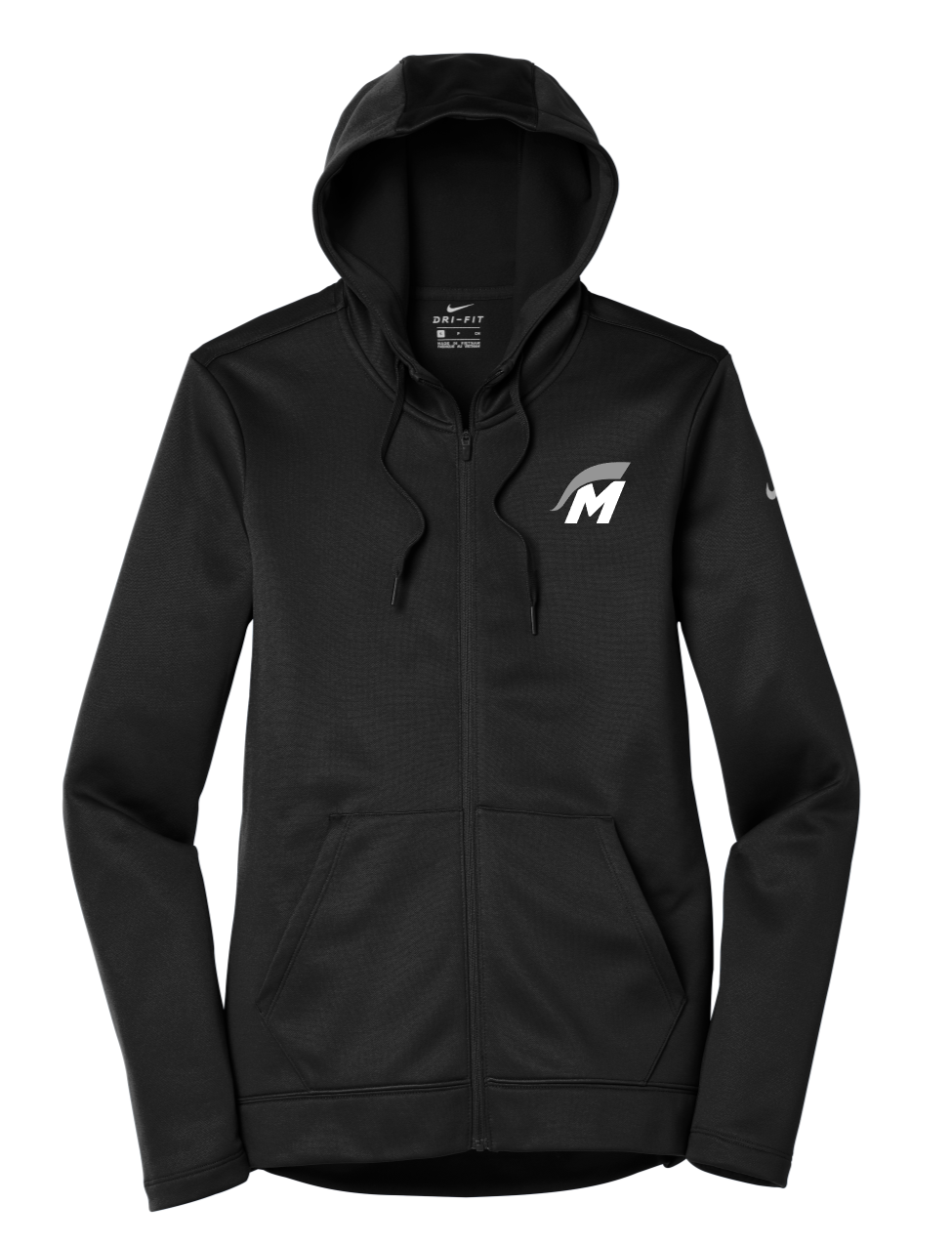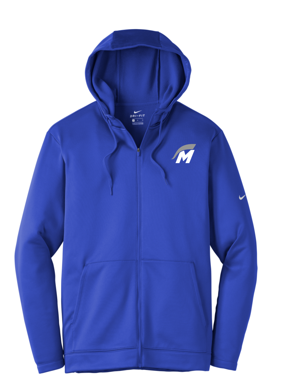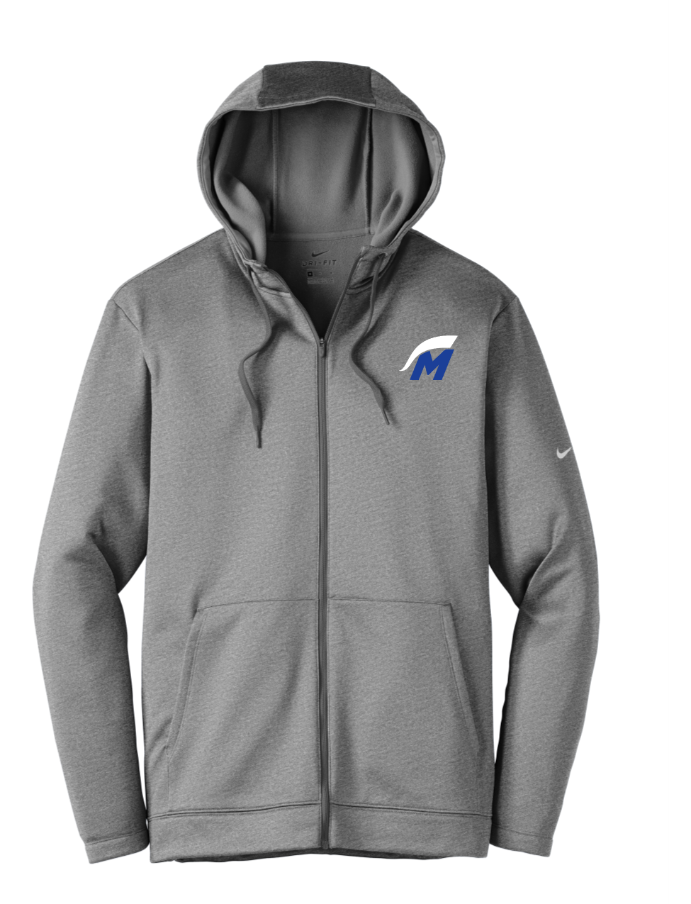 Nike has elevated the classic hoodie by improving this year-round essential with incredibly warm Therma-FIT fabric which breathes and manages moisture. The design includes a three-panel hood with dyed-to-match drawcords and zipper, front pouch pockets and open cuffs. The contrast heat transfer Swoosh design trademark is on the left sleeve. Made of 7-ounce, 100% polyester Therma-FIT fabric.